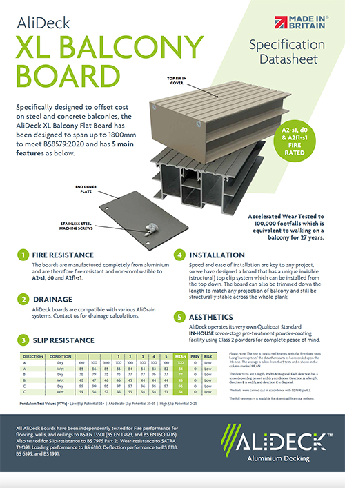 “We have subjected our AliDeck decking board range to a barrage of tests to prove its safety and durability,” continued Richard. “Achieving A-Rating for fire safety, AliDeck products are certified non-combustible and provide no contribution to the spread of fire. The boards also underwent rigorous slip-resistance testing, in wet and dry conditions, and were shown to pose a “Low Risk” for slips. Coupled with our excellent accelerated wear certification, the AliDeck System is clearly an ideal decking solution for use in walkways.”